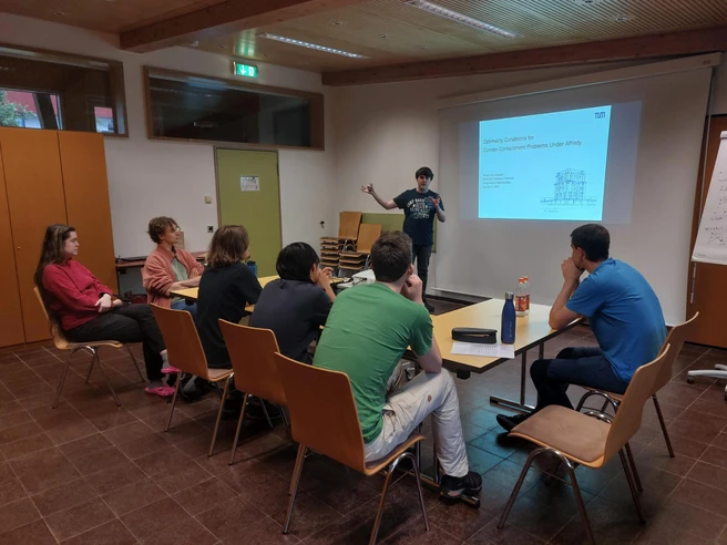 The undergraduate and postgraduate students in the elite TopMath programme work and research in many different areas of mathematics and are individually supervised by different chairs. To promote professional and social exchange, TopMath regularly organises events in various formats, such as the TopMath Talks, the Alumni Speakers Series and student meetings. The latter includes the Summer Meeting, which has been held annually since 2022, replacing the previous annual Winter Meeting. Students from different years go on a two to three day retreat to get to know each other, discuss their research and grow as a group in a relaxed but productive atmosphere.