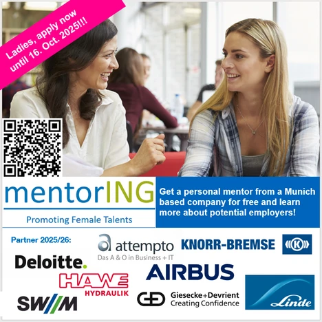 The TUM mentorING program is an open, friendly network that connects everyday student life with the professional world.